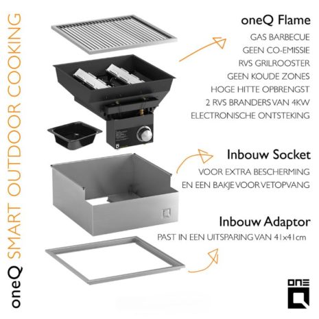 We stellen u graag voor: deze krachtige 8 kW inbouw gasbarbecue, genaamd de FLAME van OneQ. Deze gasbarbecue is uitgerust met 2 gepatenteerde branderpijpen, zodat u het hele rooster of de bakplaat kunt gebruiken zonder koude plekken en elke barbecue een groot succes wordt.