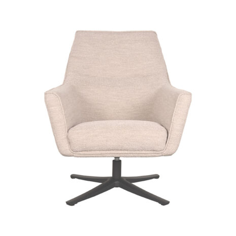 Fauteuil Tod is een ergonomische draaifauteuil uitgevoerd in naturel bouclé. Een geweven stof van onregelmatig bewerkte garens waardoor het de indruk geeft dat het is gemaakt van in elkaar verweven lussen, wat een knoopachtige verdikking vormt. Tod is in het bezit van strakke lijnen in combinatie met subtiele rondingen die zorgen dat Tod een lust voor het oog is en daarnaast is voorzien van maximaal comfort. De dikke zitting en perfecte vorm armleuningen zorgen voor een extra fijne zit. Het subtiele horizontale stiksel op de voorkant van de rugleuning en de piping rondom de zitting en leuning zorgen voor de finishing touch en geven het geheel een luxe uitstraling. De robuuste metalen kruispoot uitgevoerd in zwart zorgt voor stevigheid en geeft een moderne twist.