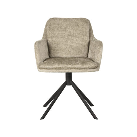 Eetkamerstoel Joy van LABEL51 is een draaibare armstoel uitgevoerd in desert elegance, een luxe, charmante en heerlijk zachte stof voorzien van een fijn gestanst patroon. Joy is een prachtexemplaar en daarnaast ook van alle gemakken voorzien. De 360 graden draaibare zitting voorzien van armleuningen, gecombineerd met de zwarte spinpoot maakt Joy tot een unieke en zeer functionele eetkamerstoel.