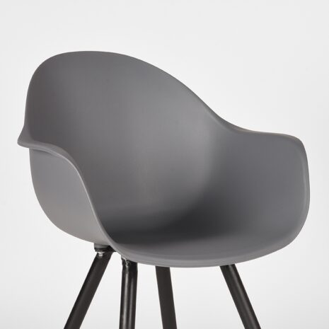Eetkamerstoel Luca, uitgevoerd in antraciet polypropyleen heeft een zeer luxe en comfortabele kuip voorzien van elegante rondingen en armleuningen. Het materiaal is duurzaam en zeer gebruiksvriendelijk. Tevens is Luca in het bezit van licht uitlopende poten, uitgevoerd in zwart metaal waardoor de stoel stevig op de grond staat en ook nog eens een leuke speelse touch krijgt.