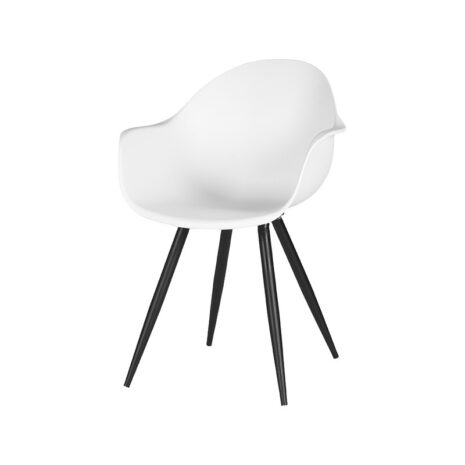 Eetkamerstoel Luca, uitgevoerd in wit polypropyleen heeft een zeer luxe en comfortabele kuip voorzien van elegante rondingen en armleuningen. Het materiaal is duurzaam en zeer gebruiksvriendelijk. Tevens is Luca in het bezit van licht uitlopende poten uitgevoerd in zwart metaal waardoor de stoel stevig op de grond staat en ook nog eens een leuke speelse touch krijgt.