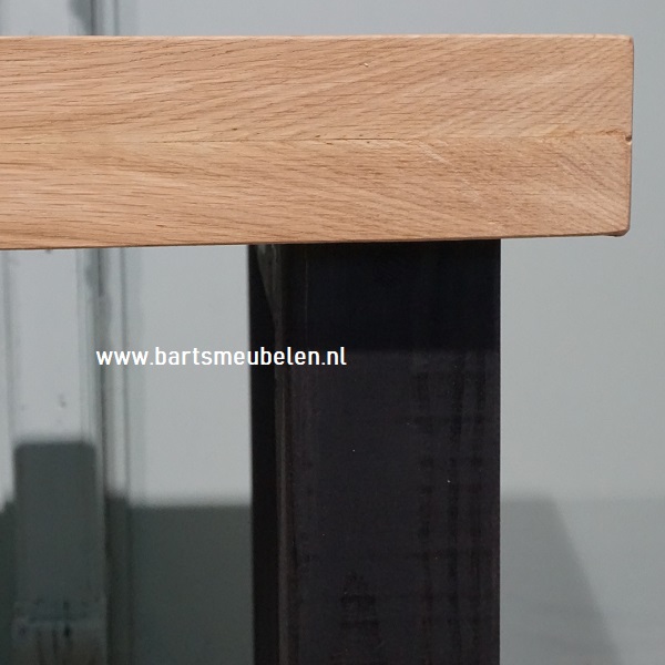 Voor deze tafel wordt kd-gedroogd eikenhout gebruikt waardoor hij alleen geschikt is voor binnen.
